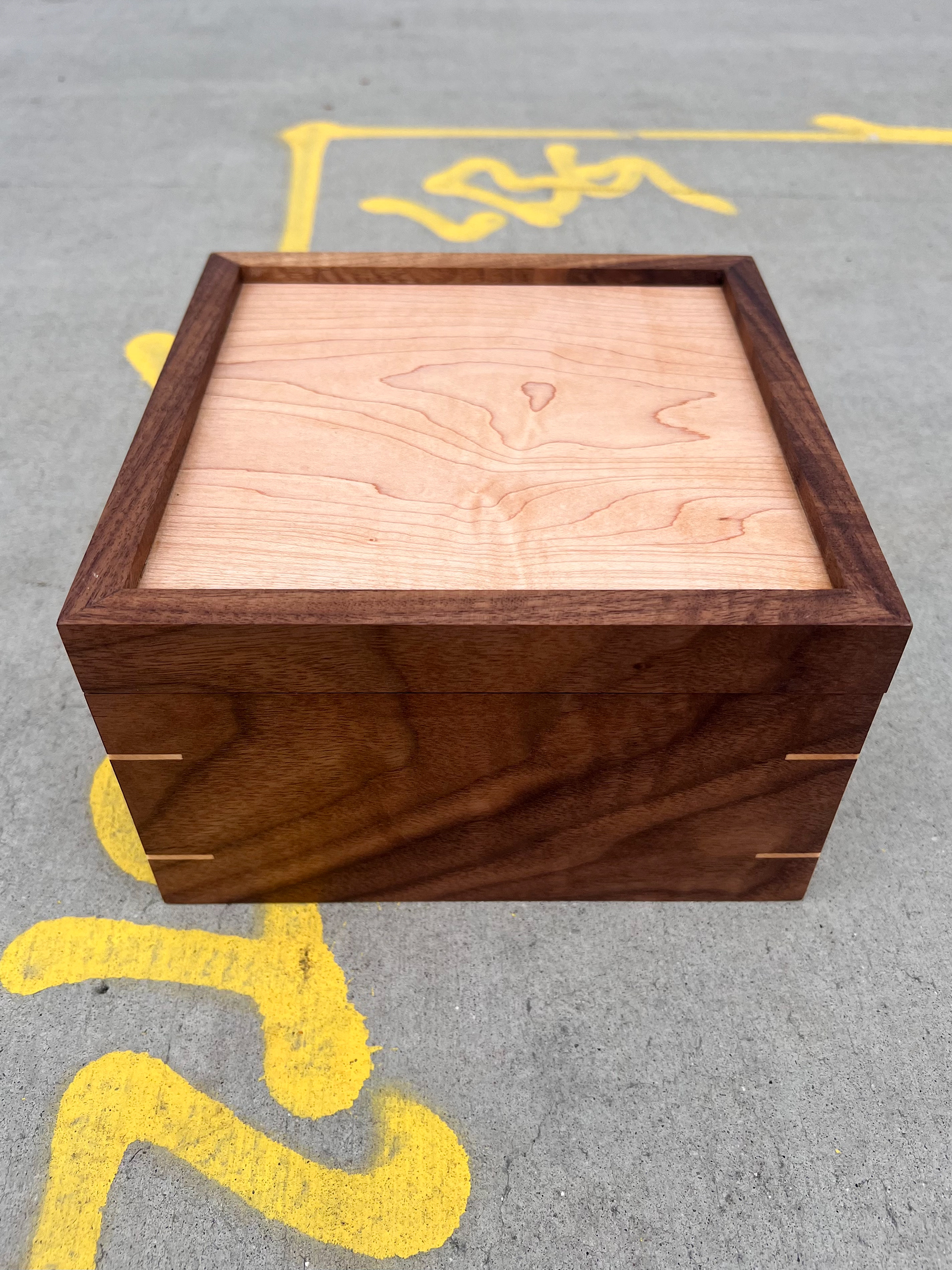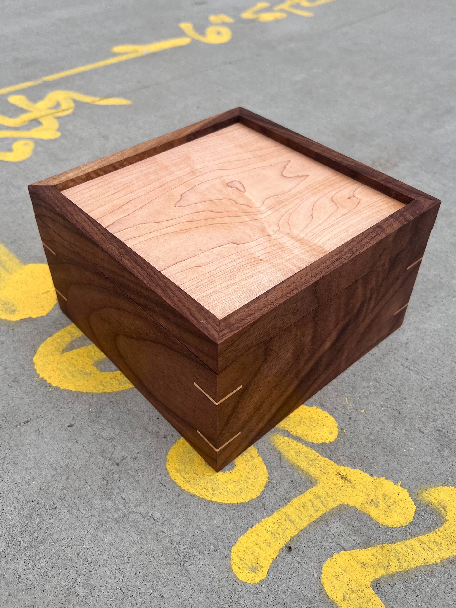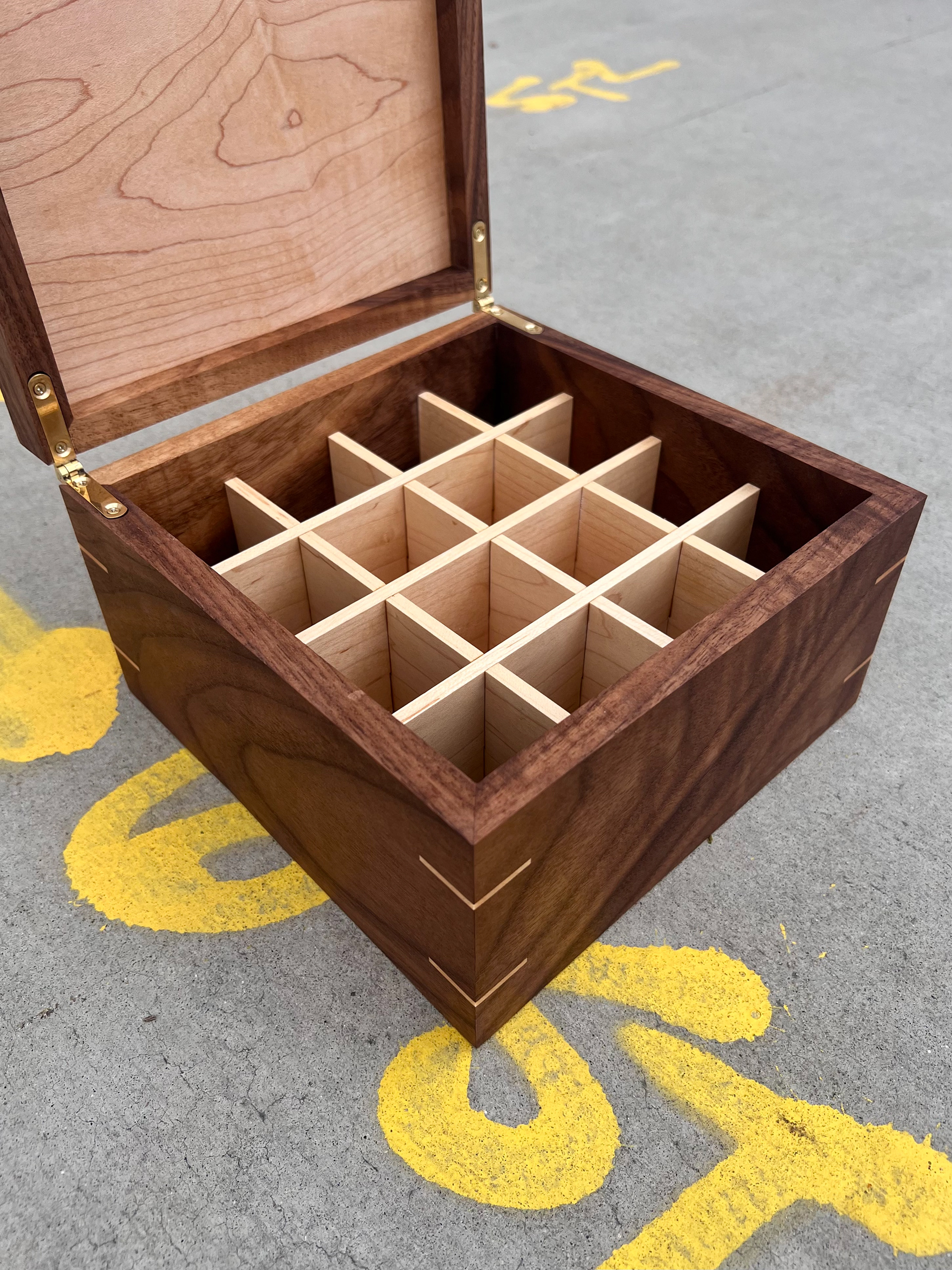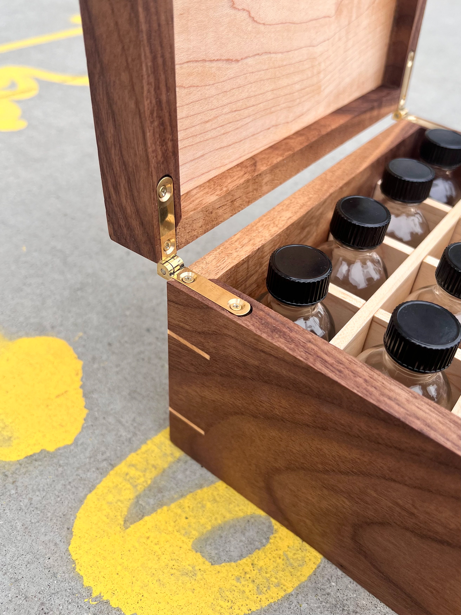 WALNUT BOX WITH HARD MAPLE INTERIOR AND SPLINES. MADE FOR A 'BUILD YOUR OWN COCKTAIL' CONCEPT FOR BAR LOCATED IN LOS ANGELES, CA.