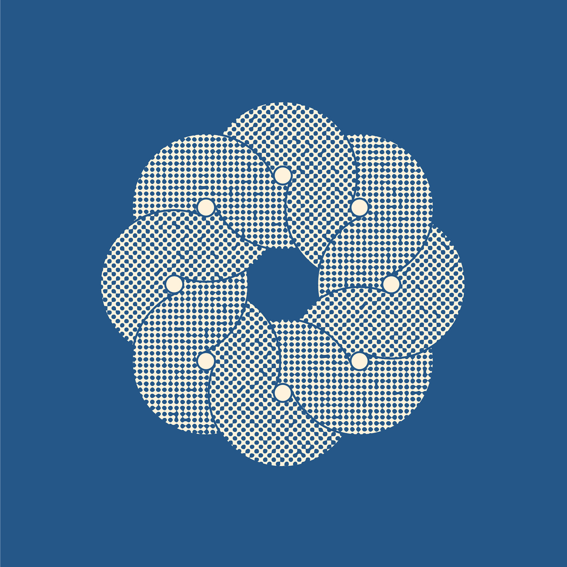 HALFTONE FLOWER ILLUSTRATION USED FOR CYANOTYPE TEXTILE PRINT.
