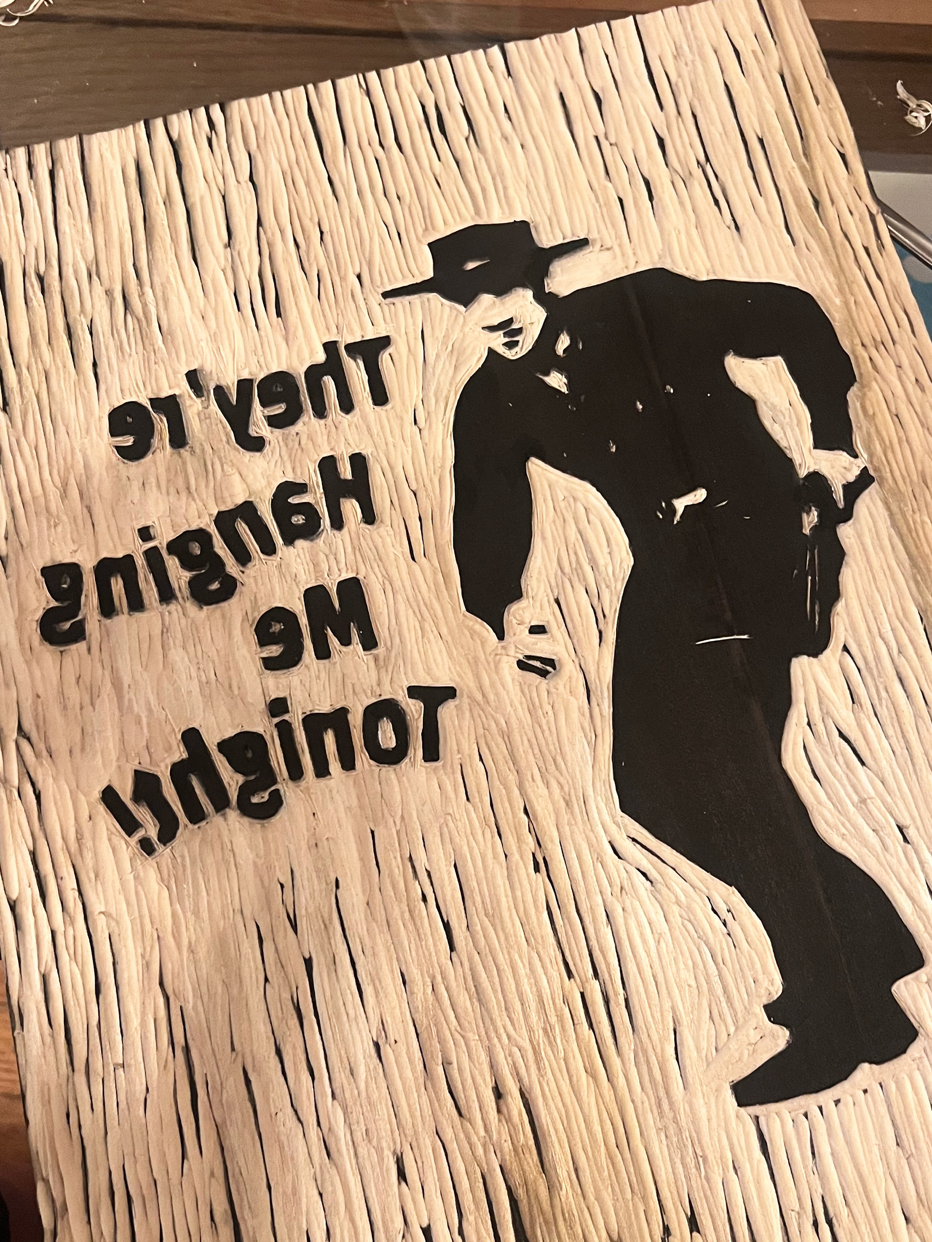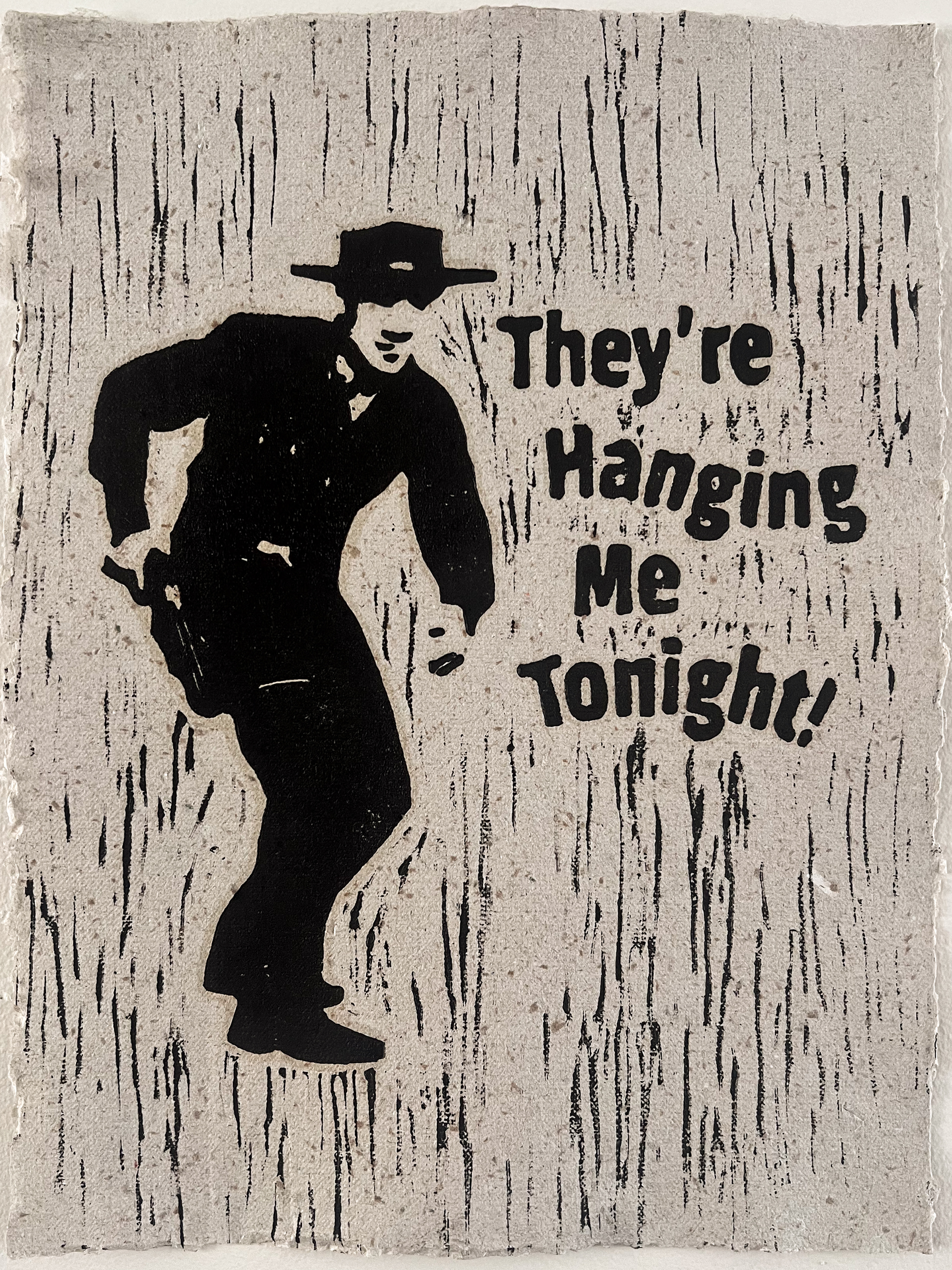 MARTY ROBBINS ILLUSTRATION WOOD BLOCK PRINTED ON HOMEMADE PAPER.